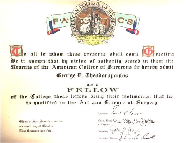 - Ιούνιος 2001, Διπλωματούχος American Board of Surgery