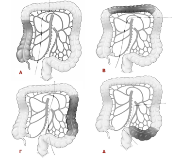 Εικόνα 2. Είδη κολεκτομών αναλόγως της θέσης του όγκου.
