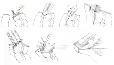 Εικόνα 12. Σιγμοειδεκτομή. Μετά την αφαίρεση του παρασκευάσματος, διενεργείται τελικο-τελική κολο-ορθική αναστόμωση με τη δια του ορθού διεκβολή κυκλικού αναστομωτήρα