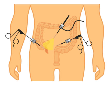 Η σκωληκοειδεκτομή μπορεί να εκτελεστεί και λαπαροσκοπικά. Όταν η διάγνωση της οξείας σκωληκοειδίτιδας είναι βέβαιη, ο ρόλος της λαπαροσκοπικής προσπέλασης μάλλον περιορίζεται, αφού η «ανοικτή» σκωληκοειδεκτομή μπορεί να διενεργηθεί μέσω μιας σχετικά μικρής τομής και με μικρότερο κόστος. Ωστόσο η λαπαροσκόπηση έχει αξία αν η διάγνωση παραμένει αβέβαιη, ακόμα και μετά την περίοδο της παρακολούθησης, οπότε βοηθά και στη διάγνωση άλλων ενδοκοιλιακών παθήσεων σε περίπτωση απουσίας οξείας σκωληκοειδίτιδας, όπως πυελικής φλεγμονώδους νόσου σε γυναίκες αναπαραγωγικής ηλικίας.