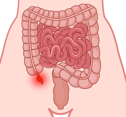 Στη δακτυλική εξέταση: έντονη ευαισθησία στο πρόσθιο τοίχωμα του ορθού, αντίστοιχα με το Δουγλάσσειο χώρο, σε πυελική θέση της σκωληκοειδούς ή σε δημιουργία πυελικού αποστήματος.