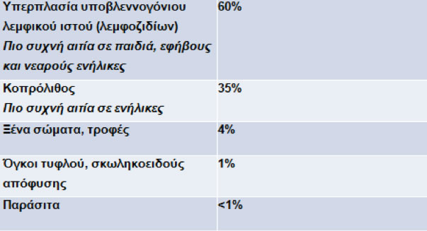 Αίτια απόφραξης αυλού σκωληκοειδούς απόφυσης που οδηγούν σε οξεία σκωληκοειδίτιδα