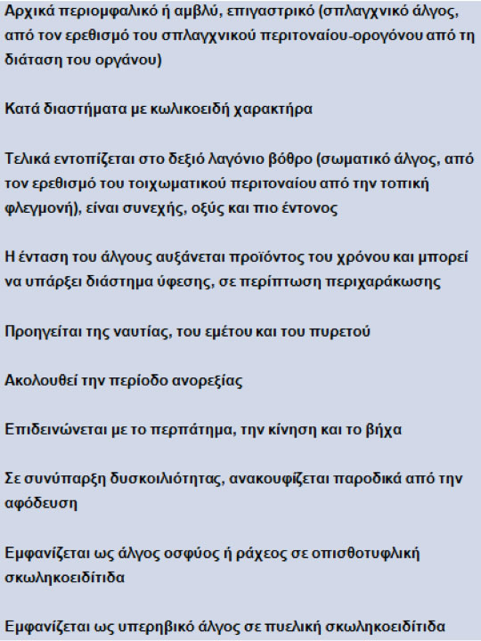 Χαρακτηριστικά κοιλιακού άλγους στην οξεία σκωληκοειδίτιδα