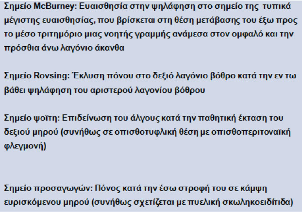 Ειδικά σημεία στην οξεία σκωληκοειδίτιδα