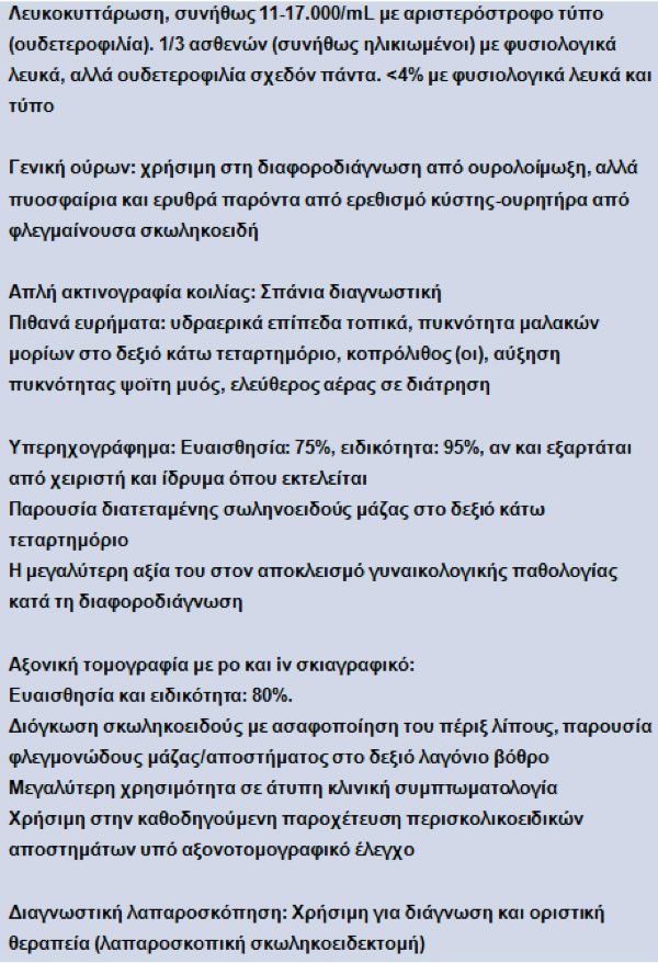 Ευρήματα από τον παρακλινικό έλεγχο σε οξεία σκωληκοειδίτιδα