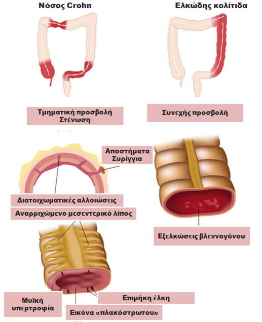 Χαρακτηριστικές διαφορές ιδιοπαθών φλεγμονωδών νόσων του εντέρου