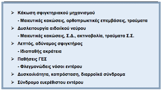 Ως ακράτεια περιγράφεται η διαταραχή ελέγχου της κένωσης στερεών ή υγρών κοπράνων ή αερίων.