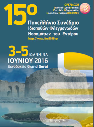 Το 15ο Πανελλήνιο Συνέδριο Ιδιοπαθών Φλεγμονωδών Νοσημάτων του Εντέρου, το οποίο έλαβε χώρα στα Ιωάννινα από τις 3 έως τις 5 Ιουνίου 2016, είχε έντονο εκπαιδευτικό χαρακτήρα και προσανατολίστηκε κυρίως στις κλασσικές και στις νέες μεθόδους διάγνωσης και θεραπείας των ειδικών αυτών νοσημάτων που προσβάλλουν τον πεπτικό σωλήνα των νέων, στην πλειοψηφία τους, ασθενών. Οι διακεκριμένοι ομιλητές του Συνεδρίου ήταν καταξιωμένοι Έλληνες και ξένοι επιστήμονες και ειδικοί ιατροί, οι οποίοι μετέφεραν τις γνώσεις και την εμπειρία τους μέσα από ενδιαφέροντα στρογγυλά τραπέζια και διαλέξεις υψηλού επιπέδου.